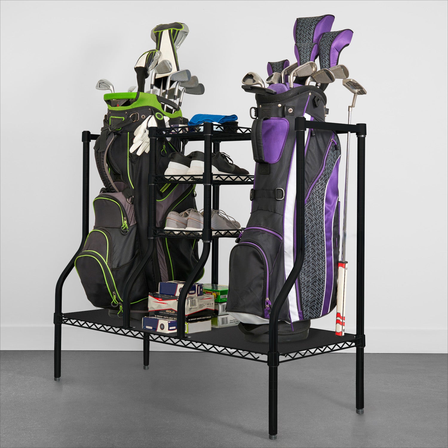 The MonsterRax Golf Equipment Organizer is a perfect storage solution for golf enthusiasts. Designed to hold two large golf bags, it offers an ideal combination of functionality and convenience for golfers.